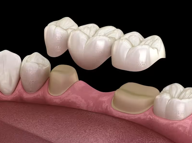 Là phương pháp dùng một hoặc nhiều chiếc răng giả để lấp đầy khoảng trống do răng mất. Các răng giả này được gắn cố định vào các răng thật còn lại hai bên khoảng trống, giúp phục hồi chức năng nhai và thẩm mỹ.