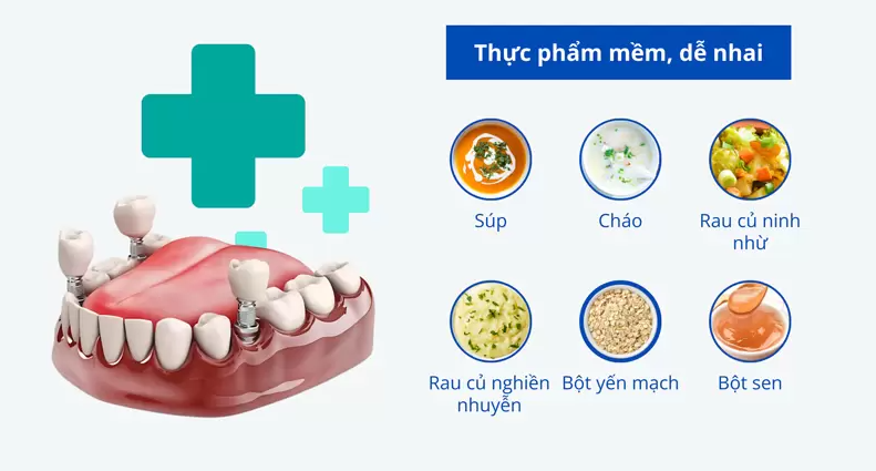 – Sau khi cấy implant, bạn nên ăn các loại thực phẩm mềm, dễ nhai như cháo, súp,… Các thựuc phẩm này sẽ giúp bạn duy trì dinh dưỡng mà không gây áp lực lên khu vực implant.