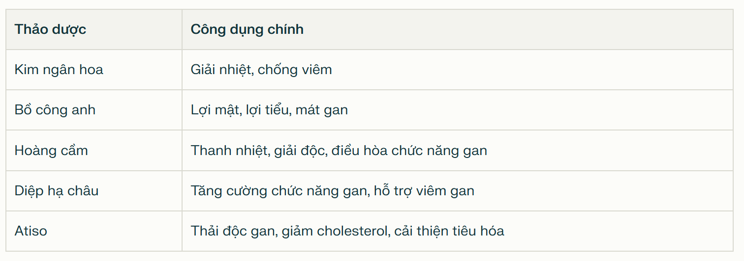 Thảo dược là nền tảng quan trọng trong Đông y giúp thanh lọc gan, thận, hỗ trợ bài tiết độc tố. Một số vị thuốc phổ biến: