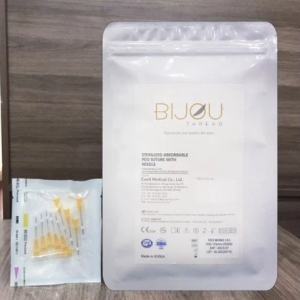 Chỉ Bijou được làm từ chất liệu PDO(polydioxanone) là chất liệu được sử dụng trong khâu tim mạch trẻ em được Bộ y tế cấp phép sử dụng. Là sợi chỉ sinh học tự tiêu tổng hợp an toàn với cơ thể người. Nên ứng dụng trong nghành điều trị bệnh và làm đẹp an toàn đến 99%.