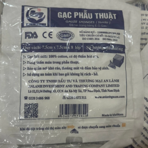Combo gồm 50 gói gạc phẫu thuật An Lành tiệt trùng, mỗi gói có kích thước 7.5cm x 7.5cm x 8 lớp, thích hợp dùng trong môi trường y tế, phẫu thuật, hoặc chăm sóc vết thương tại nhà.