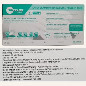 Găng tay cao su y tế latex không bột trắng Sri Trang Verve hộp 100 chiếc ( 90 chiếc với size XL)