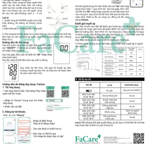 Máy đo huyết áp bắp tay FaCare Model FT-C24Y sử dụng công nghệ kết nối BLUETOOTH thế hệ mới. Máy được tin dùng vì độ chính xác cao, dễ dàng sử dụng và có nhiều ưu điểm nổi trội. Đặc biệt là khả năng kết nối bằng phần mềm FACARE để xem kết quả trên thiết bị kết nối. Sản phẩm được nhập khẩu trực tiếp tại TAIWAN với kết quả trả sau vài giây, nhanh chóng chính xác. Ngoài ra thiết bị đo huyết áp có thể sử dụng cho mọi đối tượng, kể các người có vấn đề về máu nhiễm mỡ hay xơ vữa động mạch.