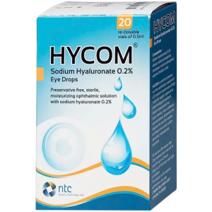 HYCOM với đặc tính giữ ẩm và bảo vệ của Natri hyaluronat làm giảm kích ứng, khô, rát và các yếu tố bên ngoài tác động lên mắt như gió, mặt trời, không khí khô, nước muối, khói, ánh sáng quá mức, điều hòa, sưởi ấm, sử dụng máy tính kéo dài… hoặc phẫu thuật mắt, bệnh viêm kết mạc, viêm bờ mi…, sử dụng kính thường xuyên hoặc kéo dài (đeo kính áp tròng, cận thị, loạn thị…). Sản phẩm không chứa chất bảo quản, đặc biệt phù hợp với mắt nhạy cảm.