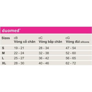 + Cách xác định size vớ dựa vào 3 số đo vòng cổ chân, bắp chân, vòng đùi. Trong đó số đo vòng cổ chân là quan trọng nhất. Tùy theo tình trạng bệnh của bệnh nhân, mức độ phù chân, độ nhão của cơ bắp chân… Bác sĩ có thể lựa chọn một size lý tưởng nhất cho từng người bệnh điều trị