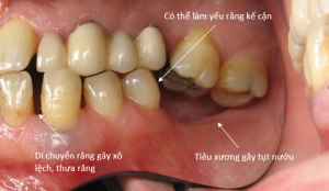 – Tiêu xương hàm làm khó phục hình răng, cần nâng xoang và ghép xương để cấy ghép Implant.